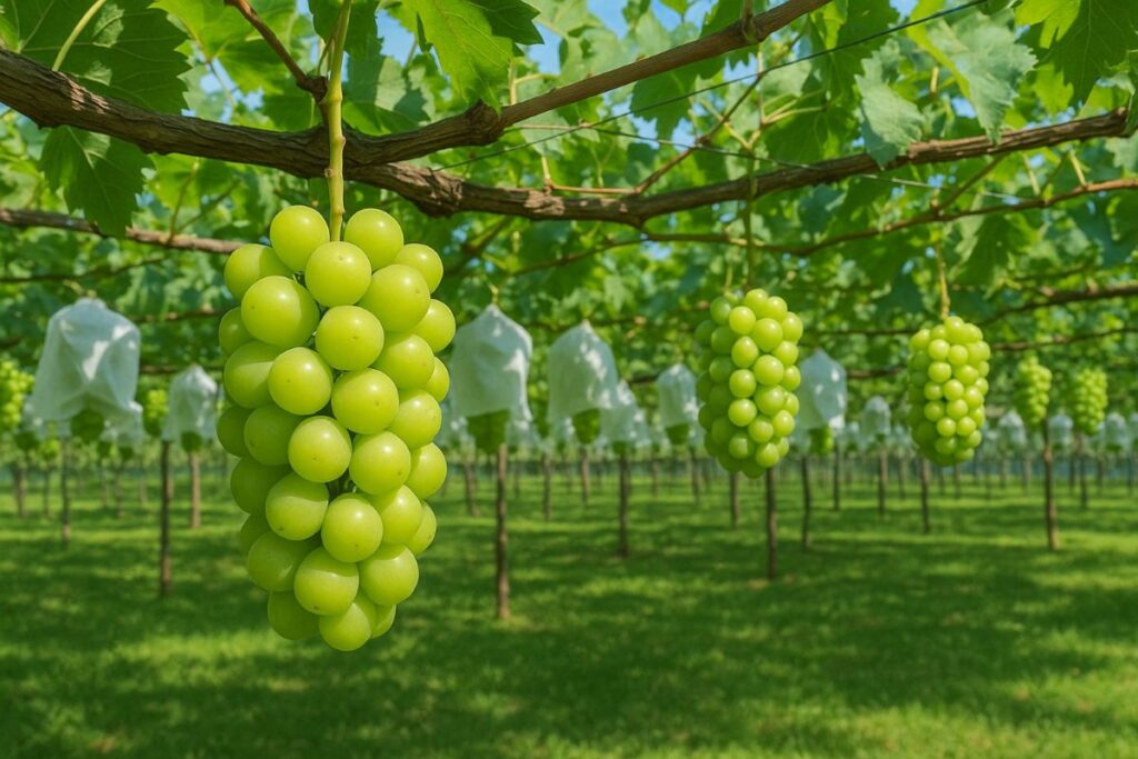 - 市之瀬果樹園でシャインマスカットの収穫を手伝う