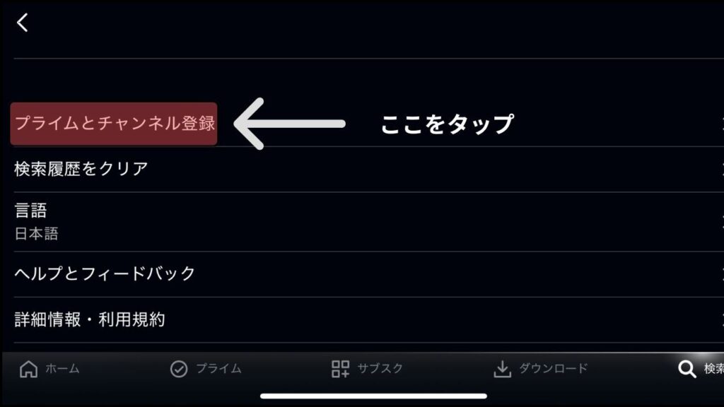 ステップ③:【画像付き】設定のプライムとチャンネル登録をタップする