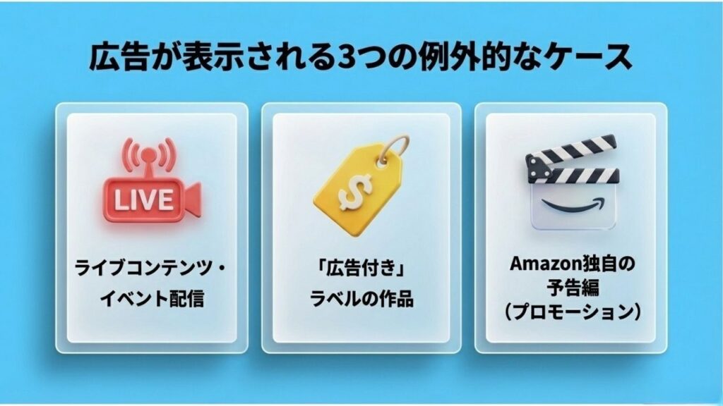 ライブイベントで広告を表示する理由は、Amazonの公式サイトで明記されているからです。