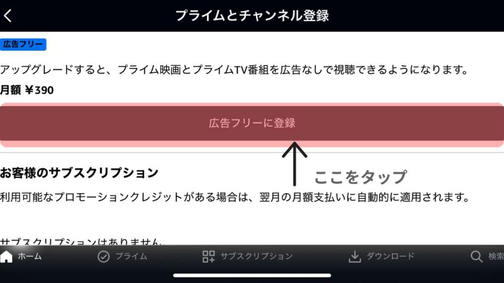 プライムとチャンネル登録をタップする