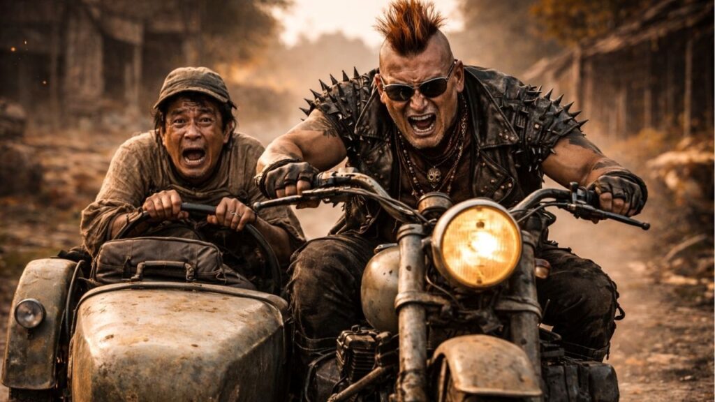 バイクに乗りながらナイフを舐めていたモヒカンのザコ。